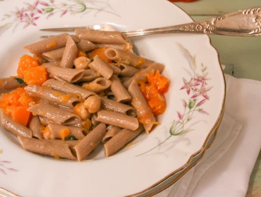 Gluten free pasta with pumpkin and chickpeas, easy to do, good to taste