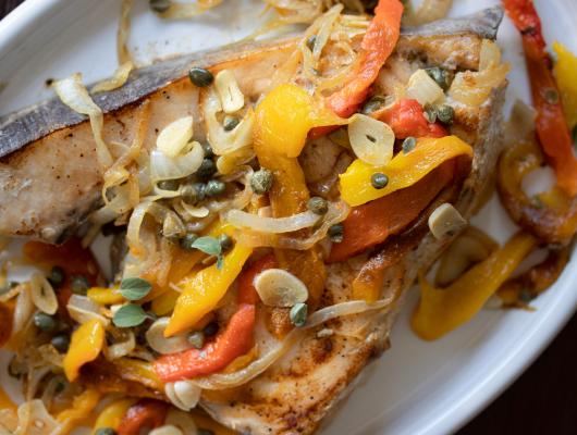 Swordfish with Onions & Roasted Bel Peppers