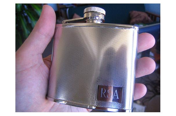 A flask is a small vessel used to hold distilled liquids. Its size and shape are suited to a pocket.