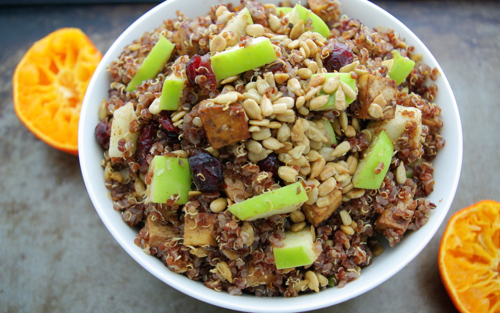 Quinoa Salad with Tangerine Balsamic Tofu and Cinnamon Dressing