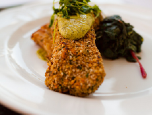 Dip grouper into egg and milk mixture; completely coat grouper in Mexicali Fire mixture.