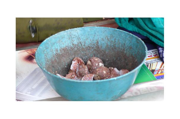 Betel nuts are a ground nut native to Southeast Asia that contain a stimulant called arecoline and can be eaten on their own or added to mineral lime and wrapped in a Betel pepper leaf.