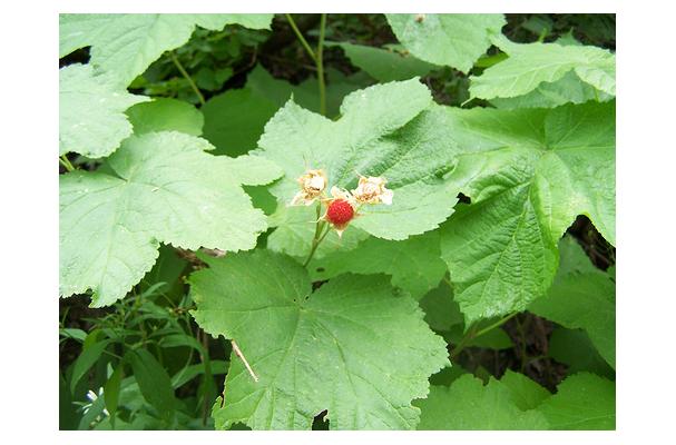 Thimbleberry is similar to a raspberry in appearance (although larger, flatter, and softer) and is often used in jams or eaten raw.