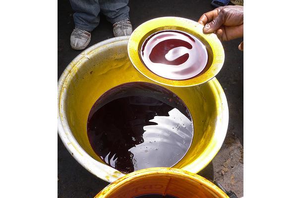 Palm Oil is red in color due to high amounts of beta-carotene and is produced from the fruit of the Oil Palm, which originated from West Africa.