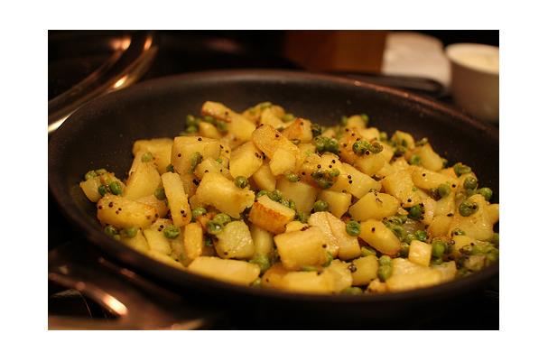 There are many, many different ways to prepare Aloo Matar, Indian spiced potatoes and peas. Some recipes use a coconut base, and others simmer the potatoes in a tomato sauce. This basic recipe uses a few simple spices for a flavorful and tangy Indian food dish that is both vegetarian and vegan. Serve with rice, if desired.