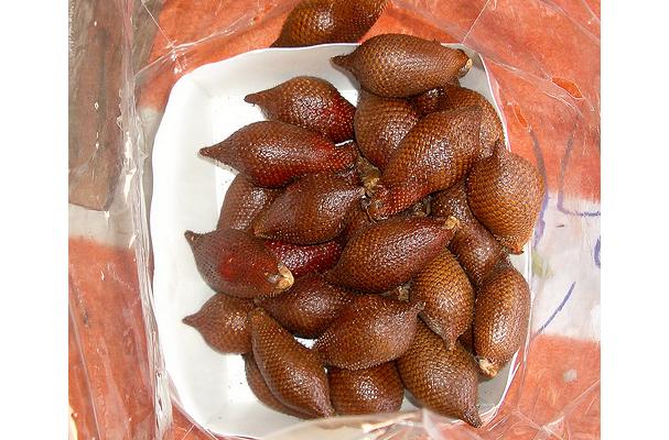 Snakefruit is a fruit about the size of an apple, called snakefruit due to its rough, brown skin.