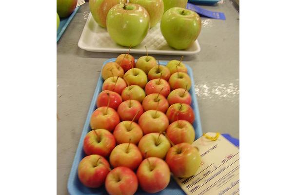 The state fair apple is a semi sweet red apple that blooms starting in september till october.