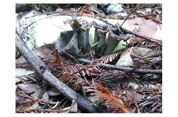 A dark coloured, almost black mushroom. Hard to find.
