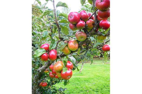Melrose Apple is a cross between the Jonathan and Red Delicious, dating from World War II and has large, dense fruit with dull red skin liberally speckled with yellow cells, occasionally with a greenish star around the stem.