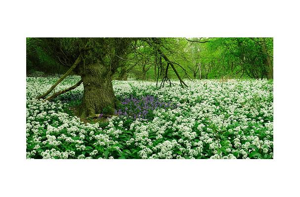 Ramsons (Allium ursinum - "Bear's Garlic") is a leafy plant whose leaves have a distinctive garlicky smell and taste.