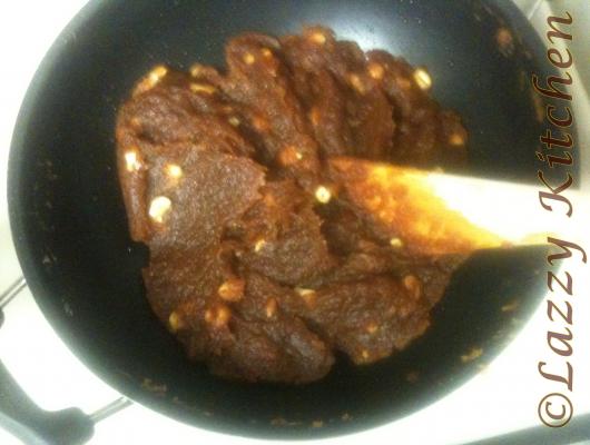 In a pan, heat 1/2 cup ghee, add the pumpkin puri to it and stir well in low flame till the raw flavor is gone(approx 15 min).