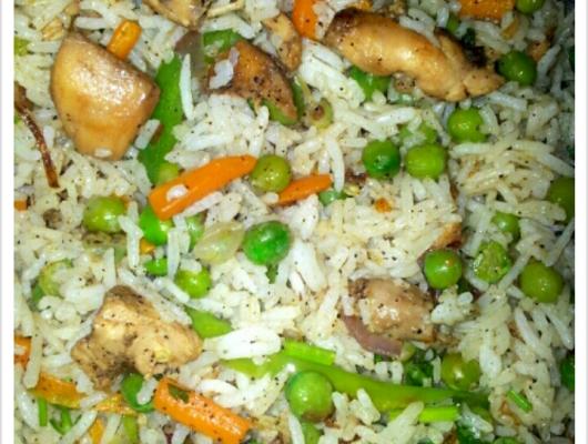 9. Chicken fried rice is ready. This rice goes well with chicken gravy or chicken manchurian.