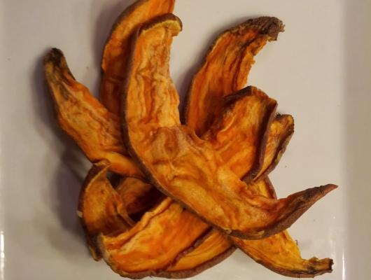 I just purchased two sweet potatoes weighing 1.59 total pounds. At 79 cents a pound the total for the sweet potatoes was $1.26. The potatoes yielded 7 oz of treats. To buy 7 oz of Sweet Potato Jerky treats at a store would cost between $7.00 - $8.00.