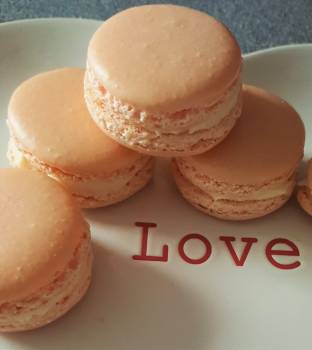 Put a blob of buttercream in the centre of one half of the macaron and sandwich with another pressing down gently until the mix reaches the edges. Repeat till all used. The macarons will have a soft chewy centre and a crisp outside.