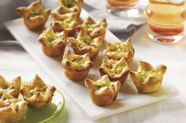 Place puff pastry on work surface. Roll pastry out in one direction to form a rectangle; cut into 24 equal pieces. Press each piece into the cups of a 24-cup mini muffin pan, allowing some overhang. Freeze for 10 minutes.