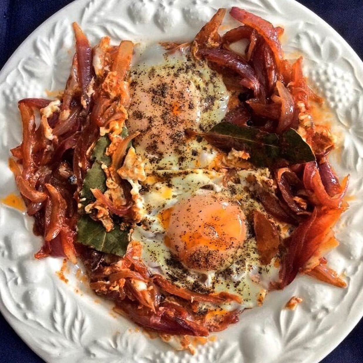 Baked Eggs with Tomato, Onion and Herbs