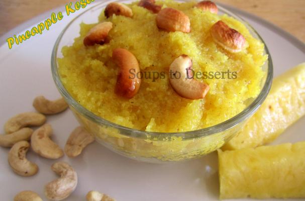I remember tasting pineapple kesari for the first time in one of the weddings. Ever since I tasted, this has been added up in my favorites. I just love the pineapple flavour. In this recipe I did not use any essence. Instead I used fresh pineapple cut into fine pieces. Though the flavor is mild, the taste was awesome.