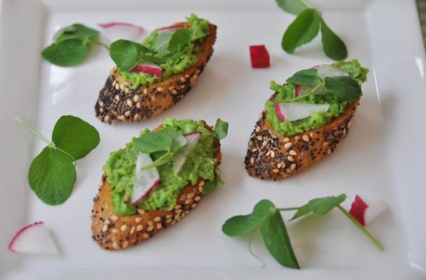 Delicately sweet peas and flavorful mint make a seasonal bruschetta that says summer is here!