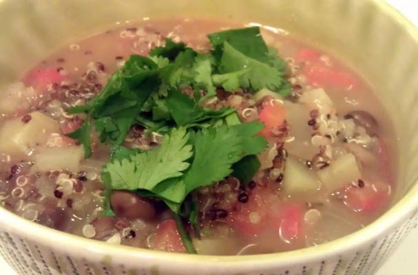 This recipe is based on one found in the Moosewood Cookbook with some of our own adjustments made to the ingredients. Mainly, we added an additional 1/2 cup of quinoa and a can of fava beans for a heartier soup. It's important to rinse the quinoa well to get rid of the bitter flavor it can have.