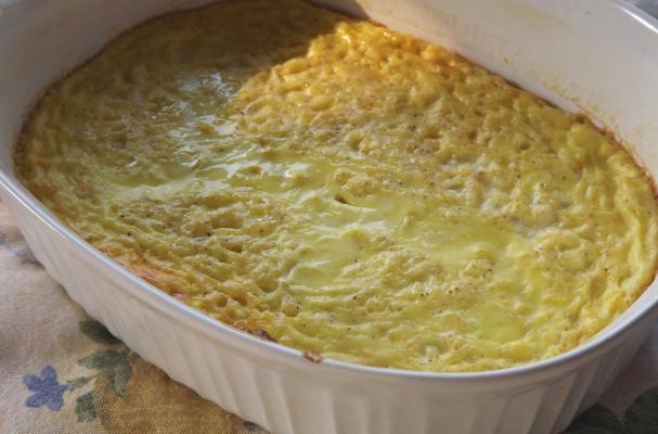 Bake the corn pudding for 1 hour or until the knife inserted into the center comes out clean.