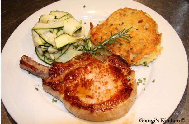 Pork Chop with Potatoes Galette and Zucchini Salad