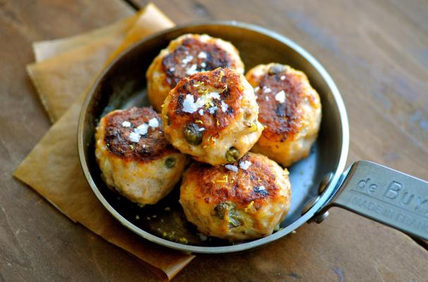 I am very fortunate to have a husband who likes to go fishing, or to put it right, I’m lucky when he catches something and take it home with him. Some time ago, Mikkel was in Iceland and caught a large wild salmon. He vacuum-packed it and took it back to Denmark. It has been in my freezer until just recently, when I used some of it to make these wonderful salmon cakes with capers, apple and lemon.