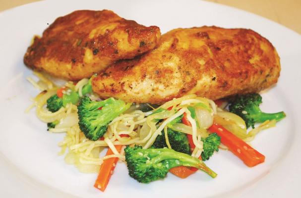 This recipe is quite versatile as you can spice-it-up with extra chili sauce or make it a little more exotic by adding curry spices to the noodle dish. The world is your oyster. The chicken's garlic seasonings lend themselves well to whatever part of the culinary world you'd like to visit – in under an hour.