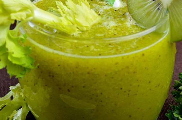 Light, healthy, green smoothie. You will find fresh kiwi, celery, apple and lime. All well balanced to give you perfect drink.