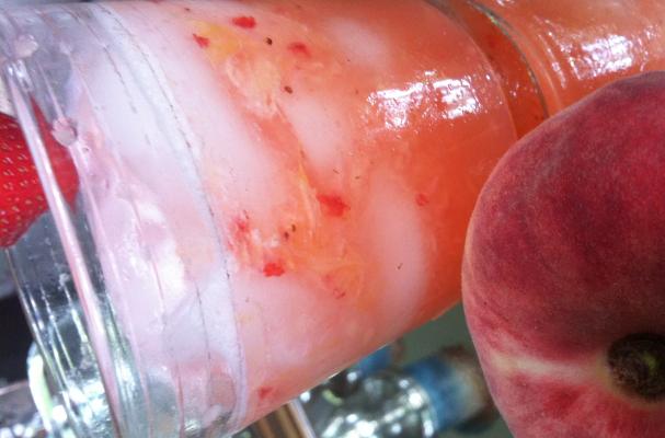 This time one whole fresh peach, four strawberries and two orange segments were muddled in the cocktail shaker. I added two parts peach wine, one part the Supernatural and for more preachiness one shot of Peach Schnapps. Poured the mixture over ice and topped off with some Sprite.