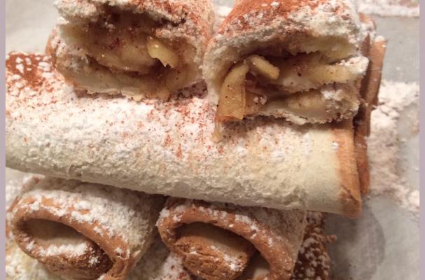 Place about 1-2 tbsp of Apple filling 1 inch from one end of the bread in a strip. Roll the bread up tightly and repeat with the remaining pieces of bread. Place rolls in a baking dish, Sprinkle with milk and bake for 20 min, until golden at 170 C