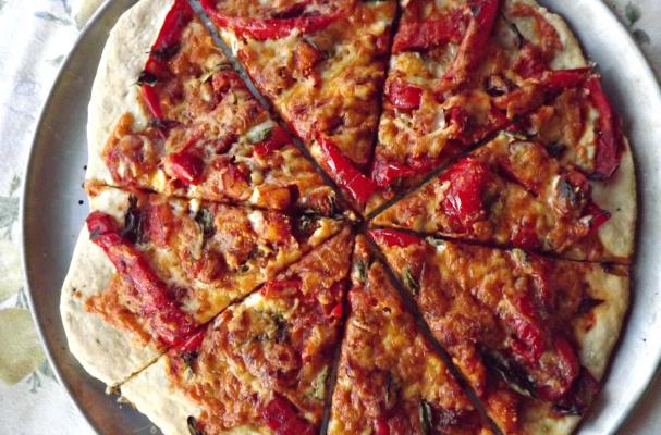 Dust the pizza pan with cornmeal. Roll out the dough to loosely fit the pizza pan.