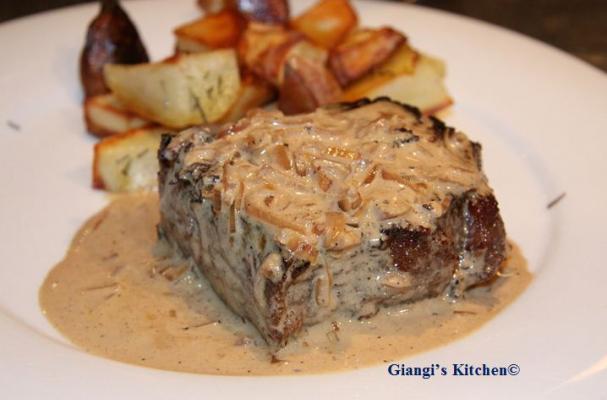 Pan Seared New York Steak with Whiskey Cream Sauce