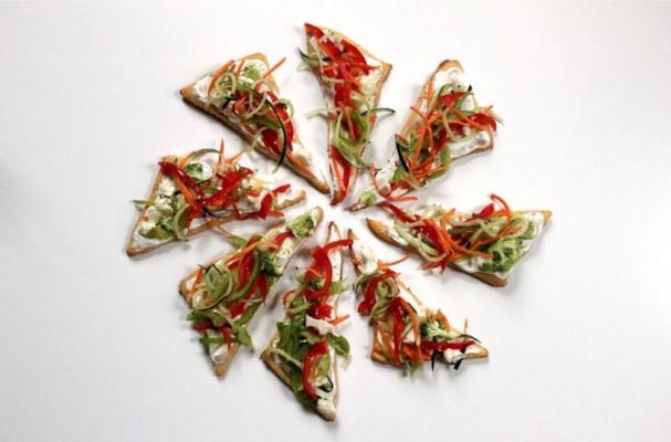 Have some fun with your spiralizer when you make this Spiralized Veggie Pizza! Easy-to-make and great for parties or a healthy snack at home, this pizza is wonderful!