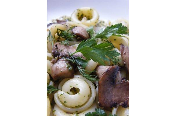 light and zesty, mushroom and herb pasta salad