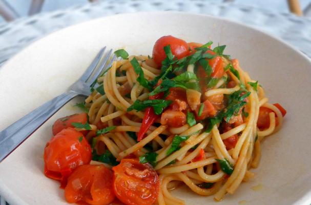 I have this thing, I suppose you could call it a challenge. It's a personal challenge, kind of secret, until now. It's about pasta. It's also about cooking quickly. The thing is I like to challenge myself to make a really tasty sauce in the time, or less than the time it takes to cook my pasta. I have loads of these sauces - some of them are so simple I don't dare to even call them a sauce. This is the latest in that category. And, like most of my recipes, it's very forgiving - you can play with the flavours to suit your taste. Give it a go, just don't get caught up in my crazy challenges.