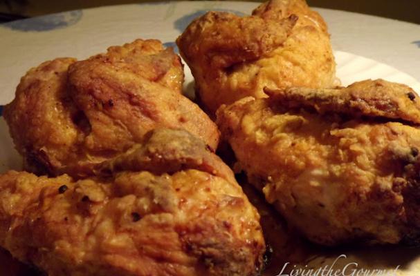 Dip the chicken piece first in the flour then in the sour milk and back in the flour.