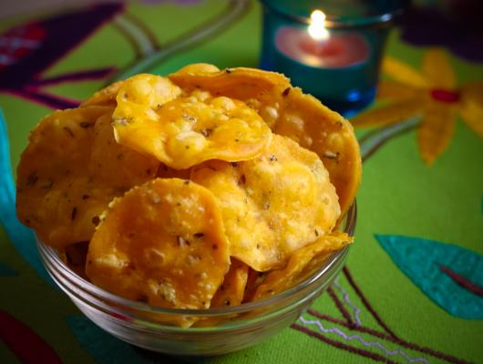 Cut out small puris with cookie cutter or circular lid of the container.