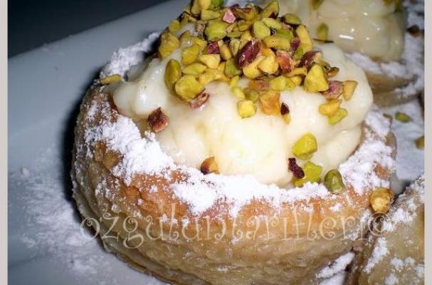 Volovanlarin ortasina hazirlanan kremadan bir iki kasik koyun ve tekrar firinda bir kac dakika pisirin. Soguduktan sonra uzerlerine pudra sekeri ve iri kiyilmis yesil fistik serpistirip servise sunabilirsiniz.Afiyet olsun
