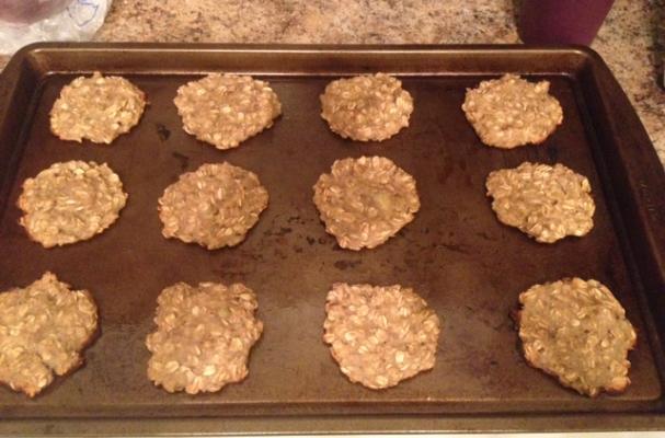 Spray your cookie sheet with non-stick cooking spray. Use a spoon to drop the dough on your cookie sheet and lightly press down to flatten. This helps it bake more evenly.