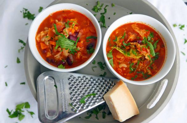3. Add the stock, the tin of tomatoes, fresh tomatoes, and a little salt and pepper. Stir everything through, set the heat so that your soup is on a gentle simmer, cover and cook for about 25 minutes or until the vegetables are cooked al dente.