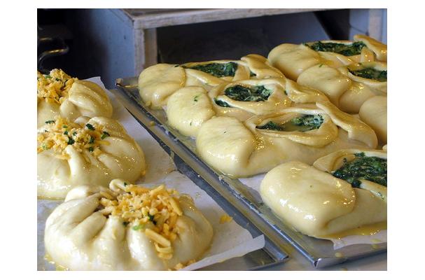 When dough is ready, roll out to 1/8 inch thickness. Cut into 3-inch circles with a cookie cutter. Put 1 1/2 tablespoon filling on half of the dough circle. Fold over, creating a half circle, and pinch down edges. Let rise for 30 minutes. Brush with a mixture of beaten egg and 1 teaspoon milk. Bake at 350 degrees for 20-30 minutes or until golden brown. Serve with the Ukrainian Borscht. Serves 36.