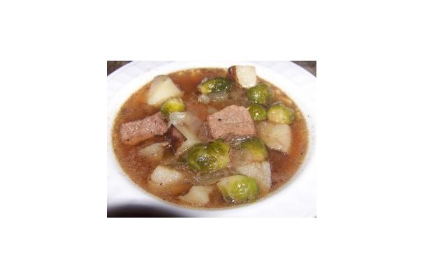 We are big fans of brussel sprouts in this house. The local farmers market had tiny brussel sprouts that looked perfect for soup. Beef broth, potato and chunks of tender beef made for a hearty beef soup. Great if you have a meat and potatoes guy in your house!