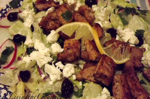 While the pork is grilling you may prepare your salad and the dressing. Serve the pork on the salad or on the side.
