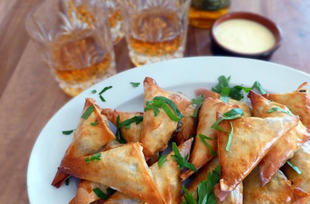 As much as I like my haggis, and as much as I appreciate a Burns' poem or even two, sometimes I don't want the full on experience. And, as a Scot living in the Netherlands, I notice that not all of my countrymen are overenthusiastic about eating a meal which consists predominantly of offal. As much as I have tried to change the image of the haggis and the opinion of my non-Scots friends, 'It's really just a spicy sausage you know.' They still regard my explanation and the poor little haggis with some suspicion. So, sometimes you have to ease people into these things gently. This is the thought process that led to my Burns' night drinks with little Scottish inspired snacks. My latest being the Haggis Samosa. The classic dinner of Haggis encased in some crispy filo pastry. A little bite sized Scottish experience for those who feel they can dip their toe in the water but are not quite ready to jump in.
