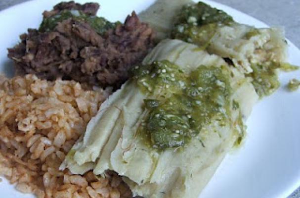 12. Remove from the pot and enjoy!! You will know that they are done when the husk can be pulled away from the masa and not stick. I served mine with refried beans and rice. The rice recipe will soon to follow, hopefully! This recipe made almost 4 dozen tamales. They can be frozen to save for later. Simply let them defrost and steam until warm.
