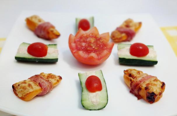 Stuffed with a mixture of Philadelphia Cheese and Tuna and wrapped with Bacon, these sweet mini peppers make great party snacks.