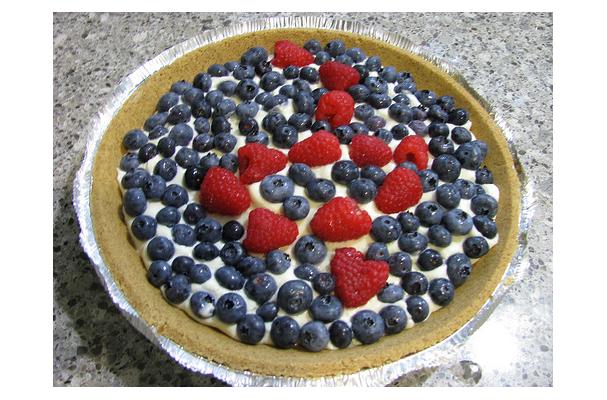 Make graham cracker crust by mixing well together the melted butter, sugar and graham cracker crumbs. Put into 8 or 9 inch pie pan and shape into crust. Reserve 1/4 cup mixture to sprinkle on top. Mix cream cheese and sugar; add Cool Whip; mix well. Put half of mixture over crust bottom. Spread blueberry pie filling over cream cheese mixture. Spread remaining cream cheese mixture over filling. Top with remaining crust mixture. Refrigerate for an hour or two. For an even easier pie, use a commercial graham crac