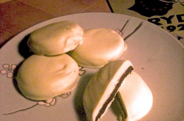 Chocolate biscuits with a thin moist layer of peppermint cream, covered in white chocolate.