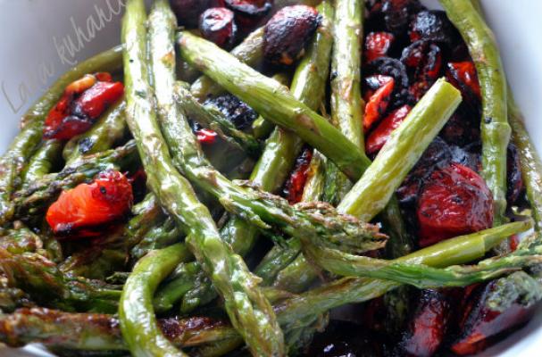 Oven roasted asparagus and cherry tomatoes