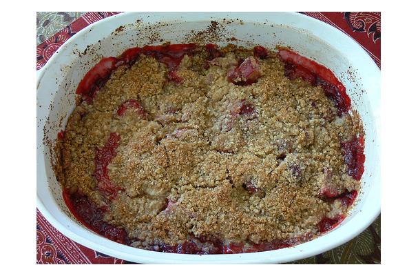 Arrange the rhubarb in a 1-1/2 -quart casserole with a cover. Add the water, sugar to